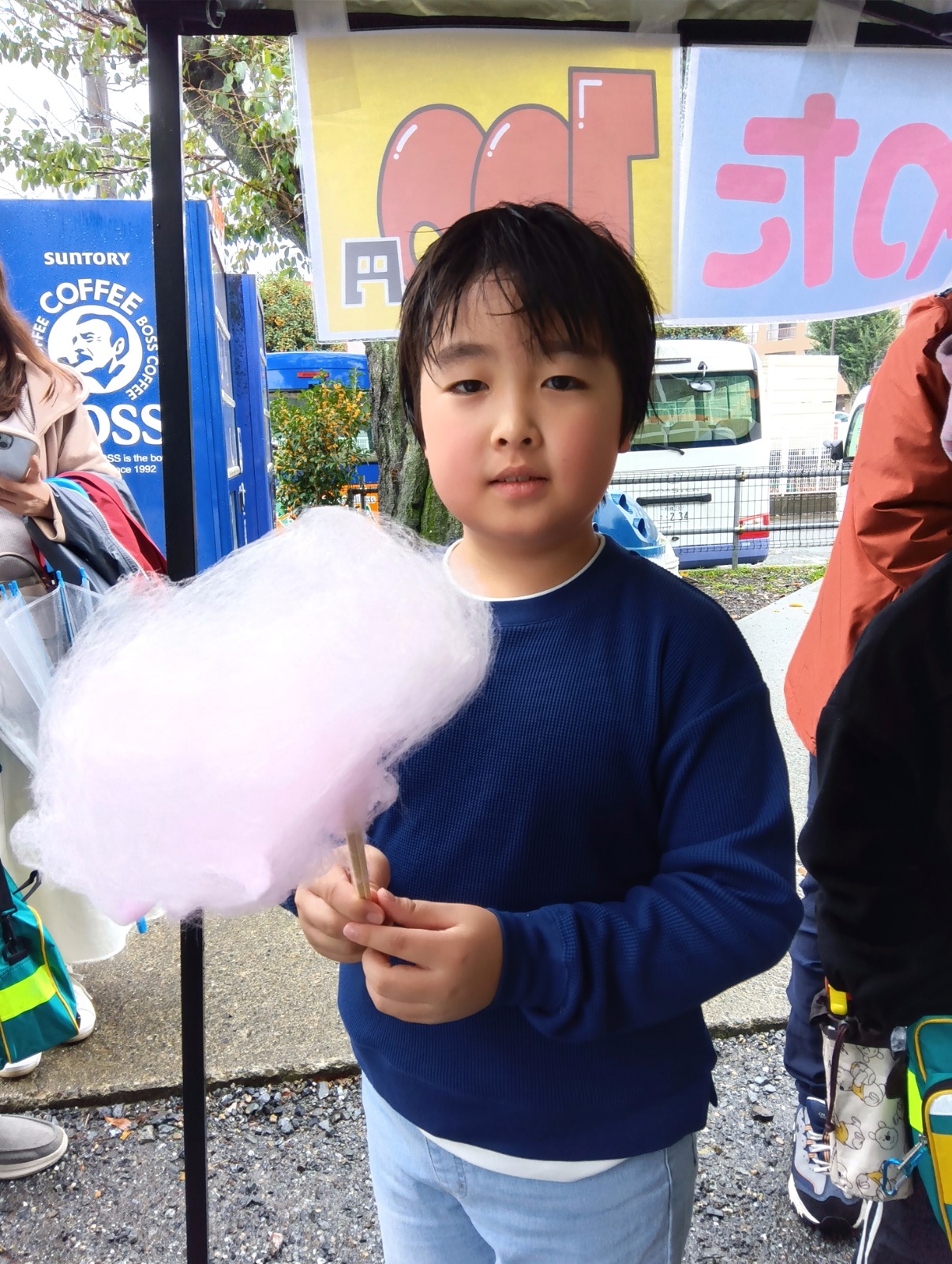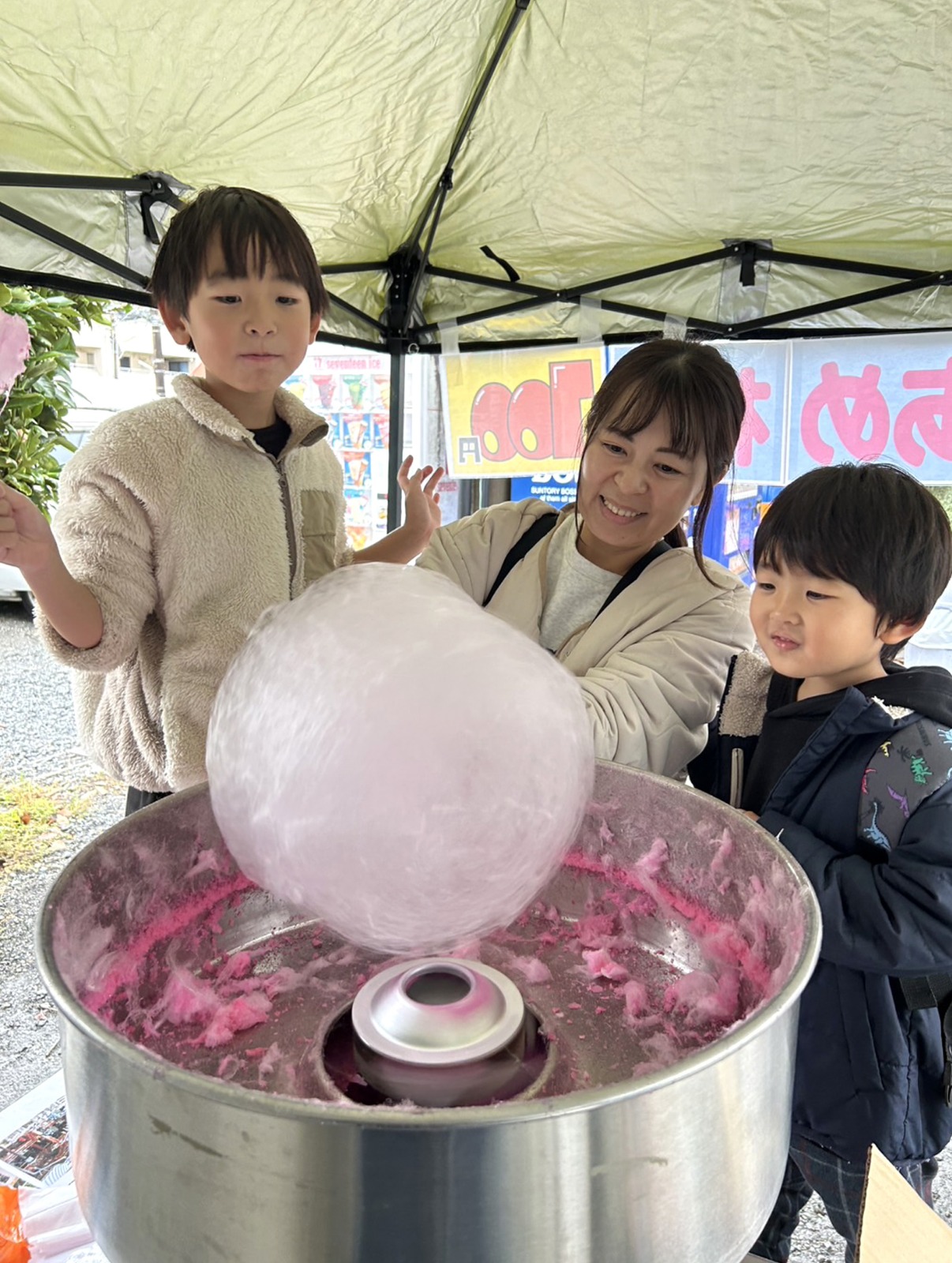 綿アメは自分で!! 上手に出来たかな? (丸く大きくなるにつれて、笑顔もでます)