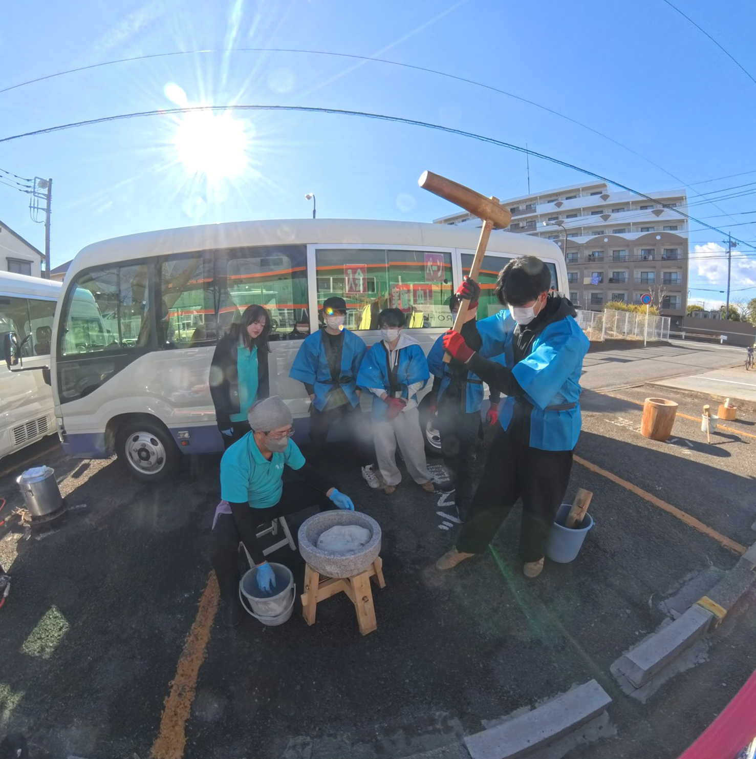 暖かいお餅を食べて貰おうと、今年も神奈川工科大学の学生6名がお餅つきを手伝ってくれました!!最後はもうヘロヘロでした 笑本当にありがとう♪