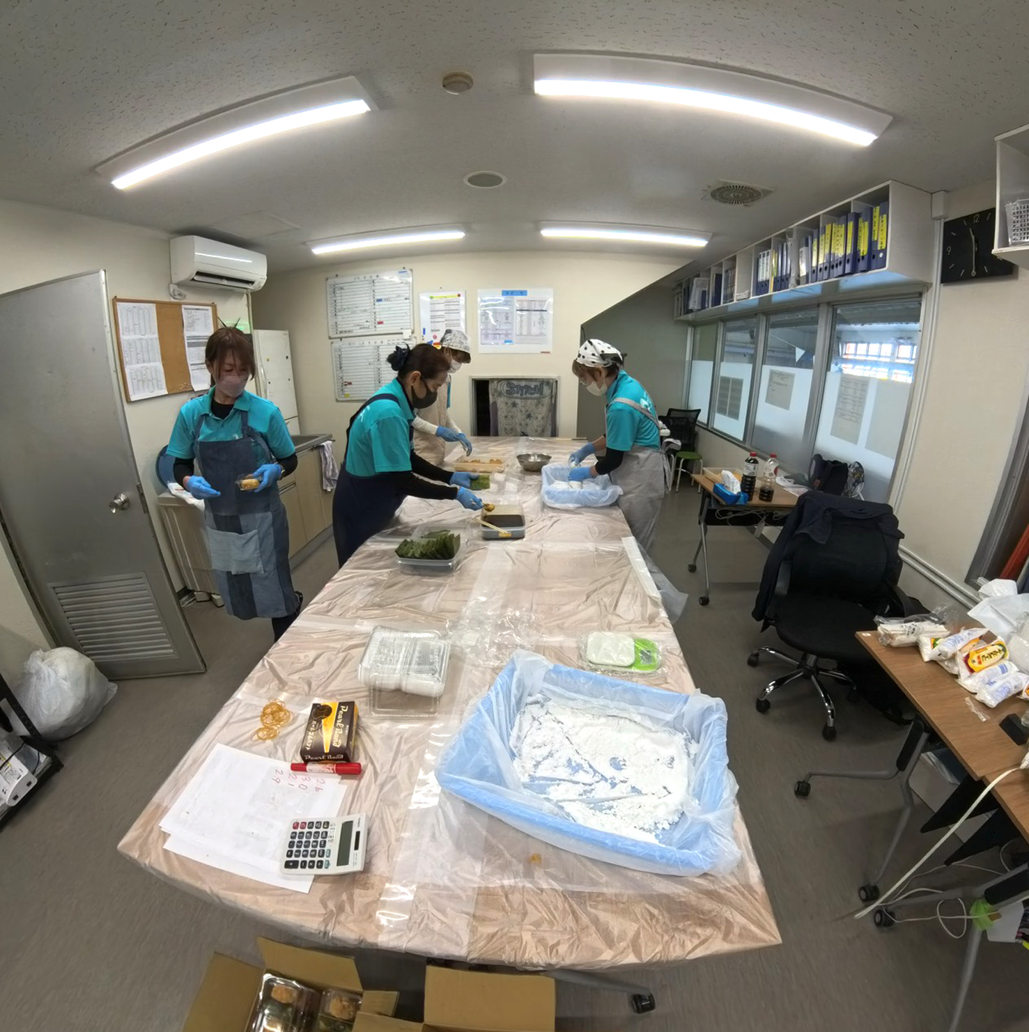 いつものコーチ室は調理場に・・・女性スタッフ、頑張ってくれました。お餅+豚汁を手作りして配りました♪
