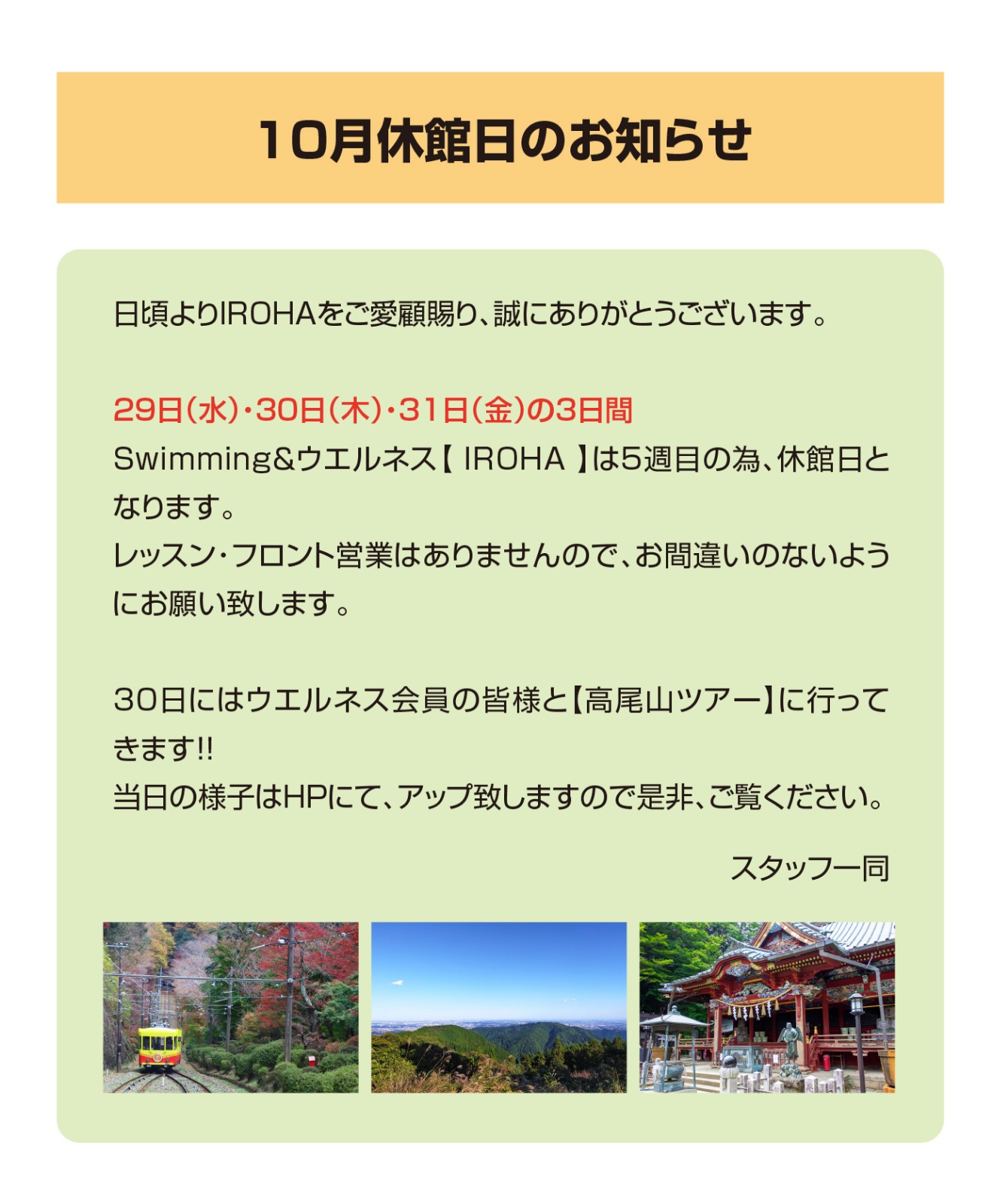 10 月休館日のお知らせ