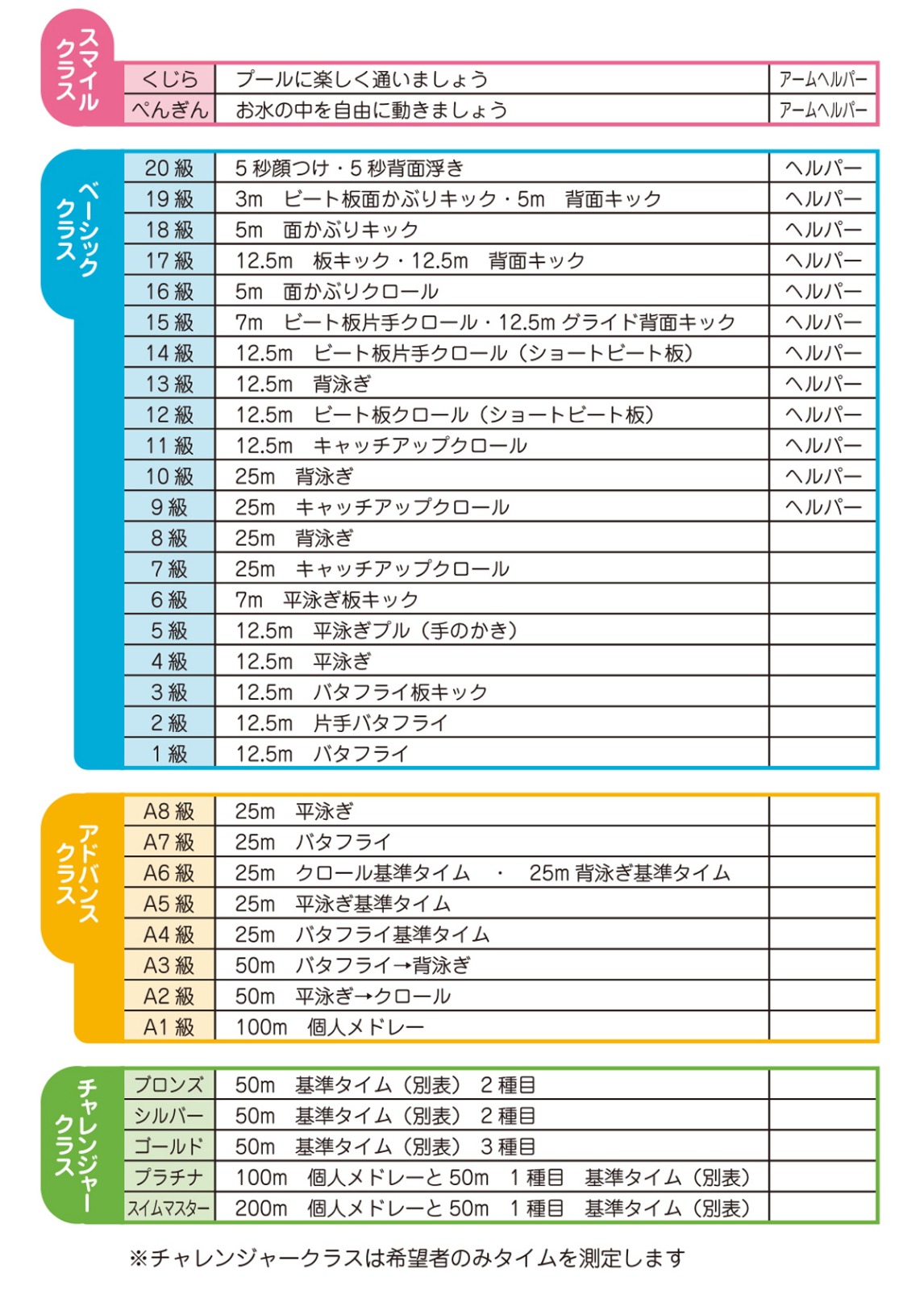 満2歳半以上のお子様が対象になります。泳力別にクラスをわけ、正しい泳ぎを身につけます。たくさんのお友達もでき、集団生活の中でのマナーを学びます。2ヶ月に1回の発表会では目標に向かって頑張るお子様はすごく輝いていますよ。思わず「がんばれ~!」とコーチも力が入ってしまいます。