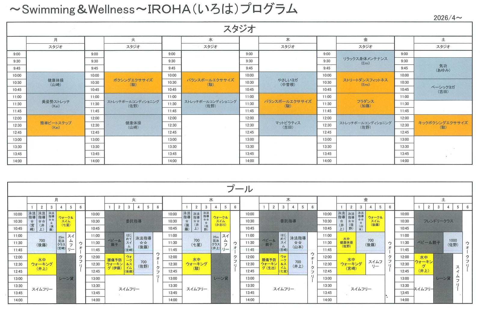 タイムスケジュール - IROHA いろは swimming&wellness|座間 スイミングクラブ ウェルネス ダンス ボクシング 生涯水泳